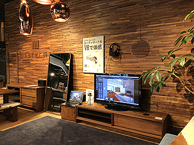 VR空間を自在に歩いて回るのはもちろん、VR体験しながら壁・床材の変更や家具・什器の配置換えも自由自在。空間の広さ、天井の高さを体験いただきながら、お客様と一緒に理想のプランを作り上げていくことができる、コミュニケーションツールです。
