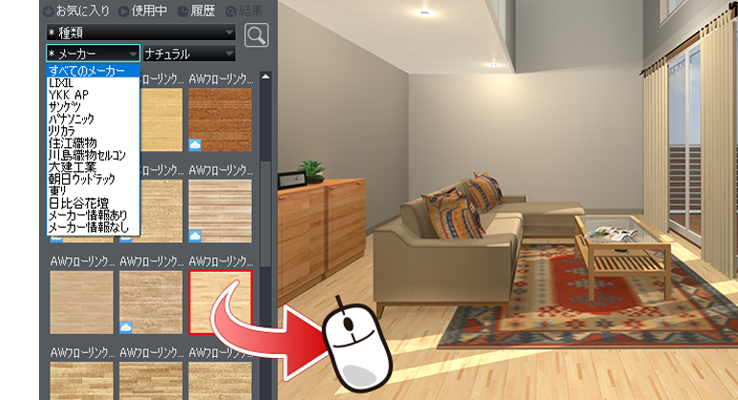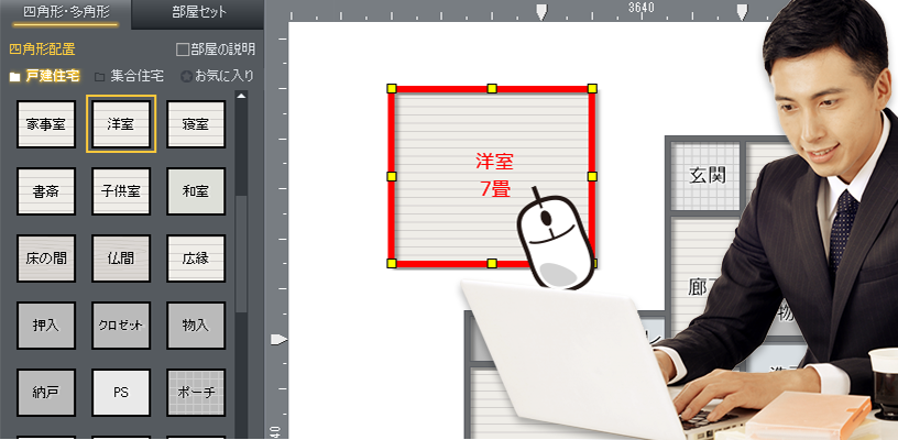VRを見ながら出てくるお客様のご要望に、お待たせすることなくその場でデータ編集できます。設備・家具の配置や、壁紙・床材の変更作業が可能。お客様の決断が早くなります。