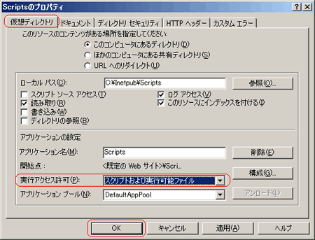 ■Scriptsフォルダを作成し、アクセス権を設定する ■仮想ディレクトリを作成する ■IIS6.0 を設定・確認する |
