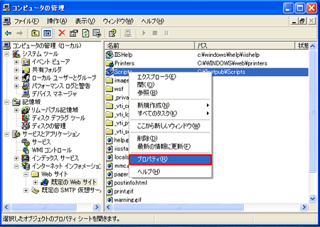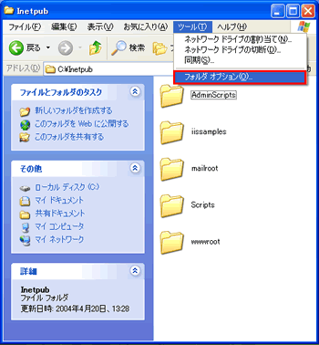 [インターネット インフォメーション サービス]画面の左側で開くことができます。 [+]マークをクリックすると、そのフォルダの中のファイルやフォルダが表示され、[−]マークに変わります。