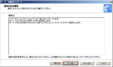 [Front Pageサーバー拡張]のチェックがついているときははずして、[次へ]ボタンをクリックします。