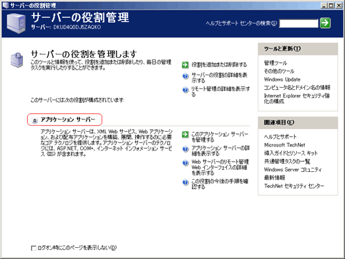 [サーバーの役割管理]画面に[アプリケーションサーバー]が表示されます。