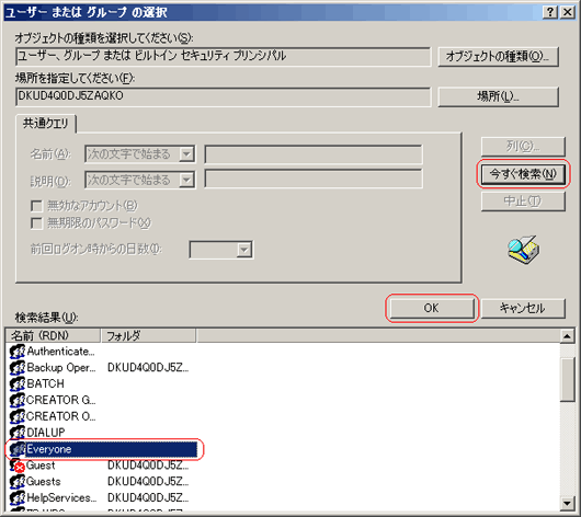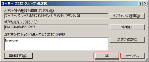 検索結果から[Everyone]を選択し、[OK]ボタンをクリックします。