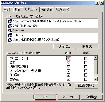 ■Scriptsフォルダを作成し、アクセス権を設定する