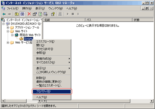 作成した[Scripts]フォルダを右クリックし、表示されたメニューから[プロパティ]を選択します。