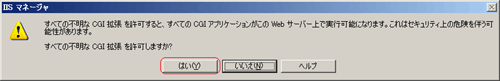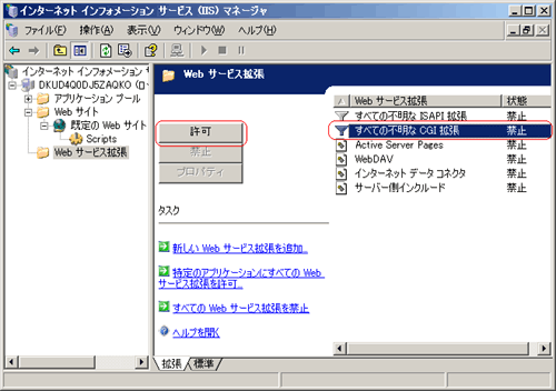 [すべての不明なCGI拡張]を選択し、[許可]ボタンをクリックします。