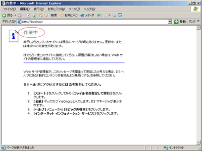 [作業中]と表示されれば、IIS 6.0 は正常に動作しています。